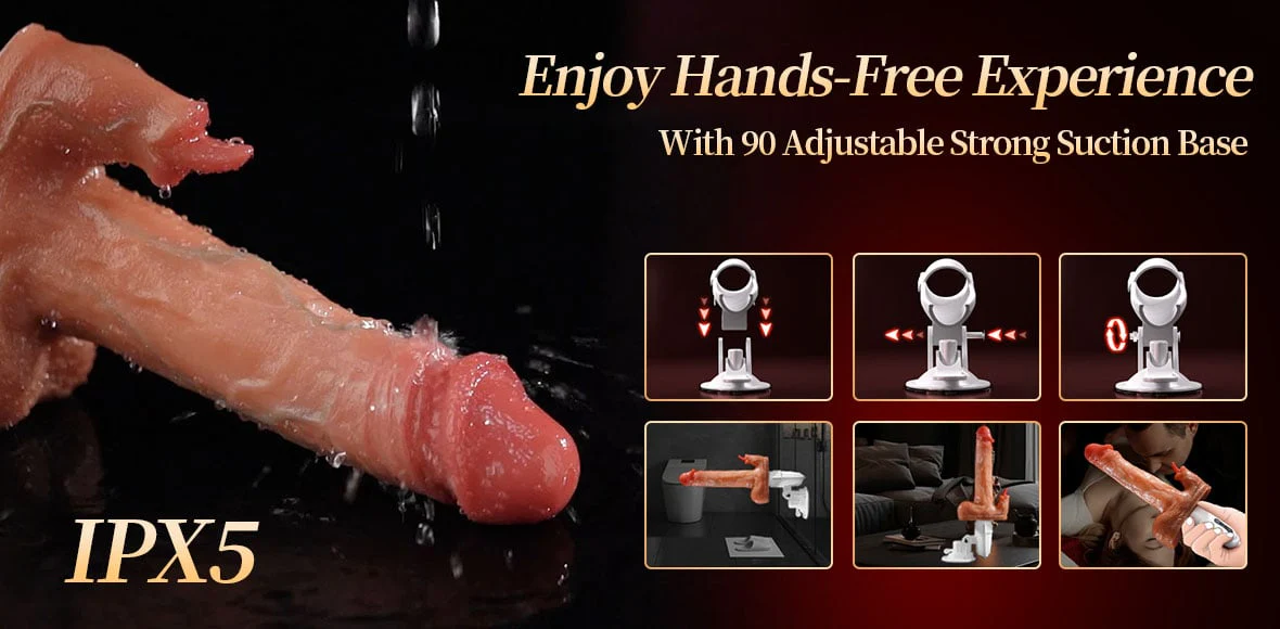 - Vibrating & thrusting & licking & heating & sex machine - 5 in 1 vibrator.