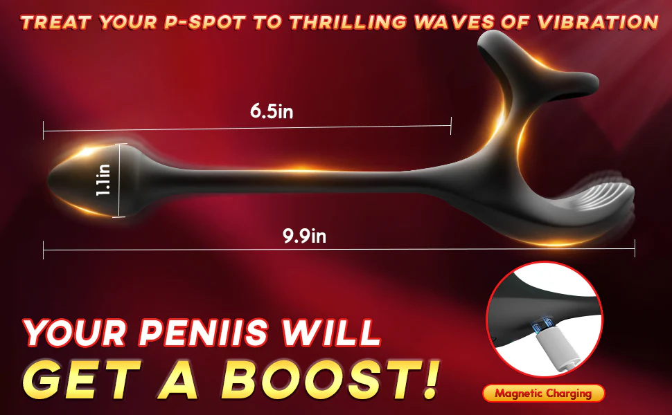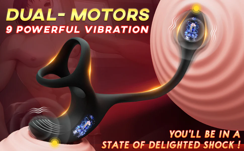 - 9 intense vibrations with 2 powerful motors to stimulate penis, perineum and anal 3 in 1.