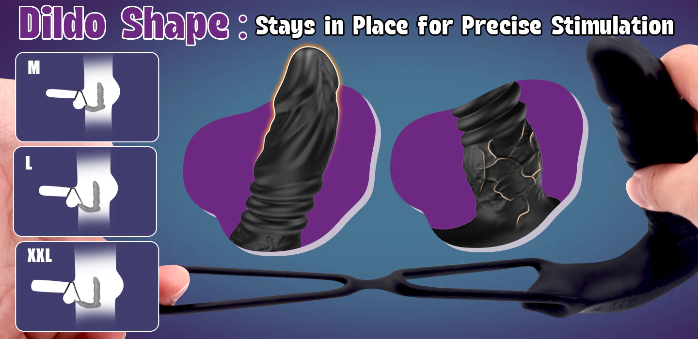 The anal vibrator, prostate massager, and penis ring are 3 in 1 to prolong your sexual experience and enjoy double fun! Dildo shape to experience life-like penis entry hitting your P-spot directly for up to 10 minutes of non-ejaculatory pleasure. At once, the high elasticity penis ring stretches to stop your urge to ejaculate early allowing you and your partner to indulge in a longer sexual experience, and your partner will satisfy you like never before.