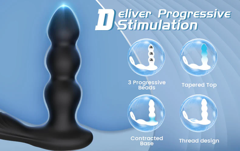 - 3 beads with tapared top and contracted base deliver progressive penetration stimulation.