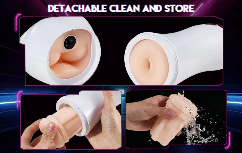 This erotic masturbation cup has a unique splittable design and includes a simulated vaginal and breast entry. It is made from high quality silicone and is more skin friendly. The vaginal section has five sucking functions to meet your different needs for a more lifelike experience. The breast section has seven vibrating functions to provide different stimulation for different levels of pleasure. Whether used alone or with a partner, this erotic masturbation cup is an indispensable choice for your sexual exploration.