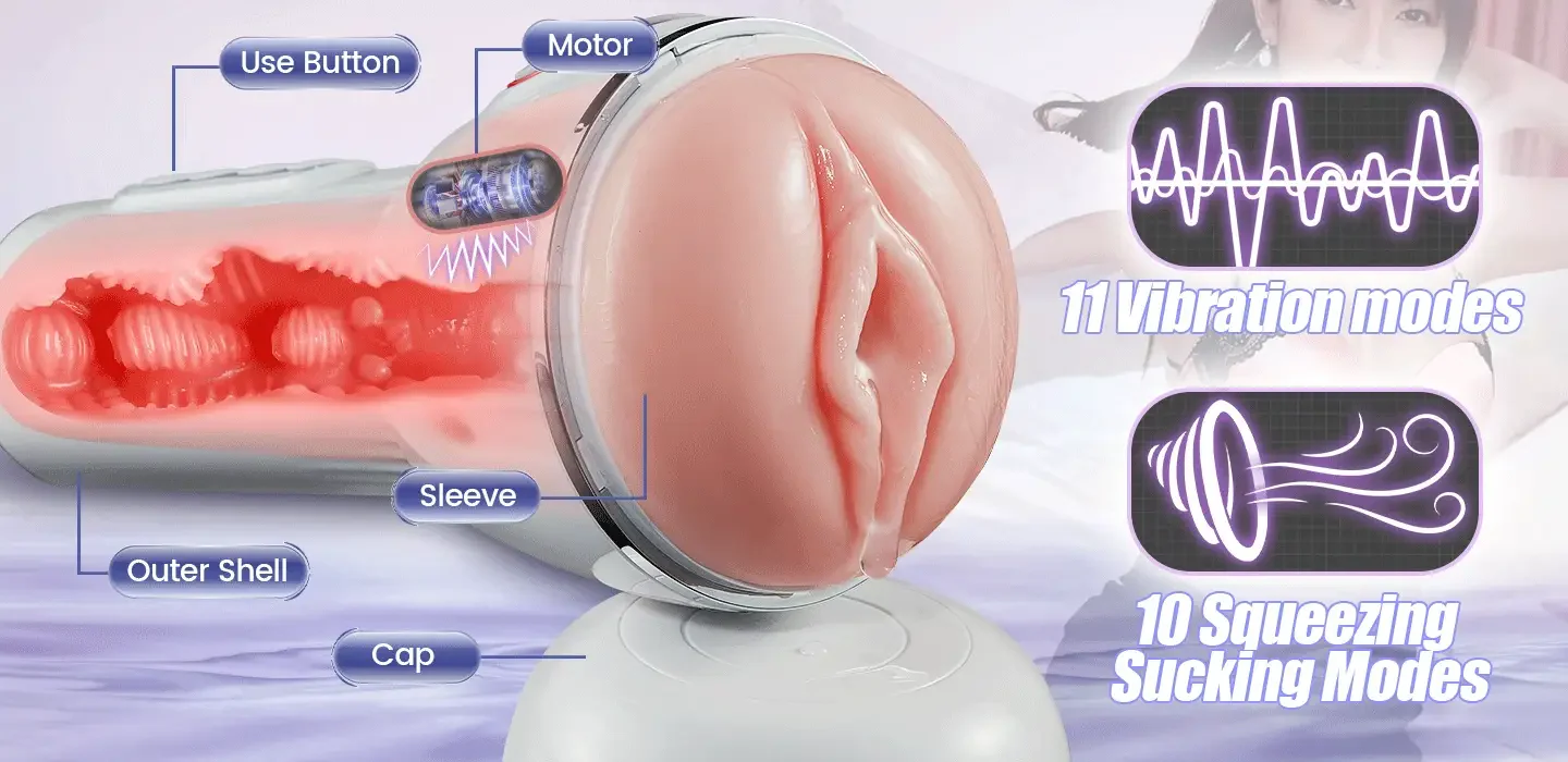 - Function: 10 Squeezing & Sucking, 11 Vibrating, 3 Voice Modes