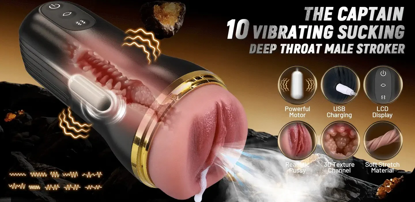 The Captain - 10 Vibrating Sucking Deep Throat Male Stroker