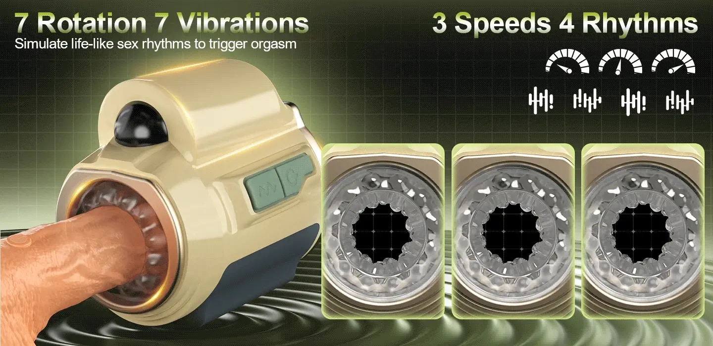 Features:- 7 rotations with 3 speeds 4 rhythms, enjoy a life-like sex experience.