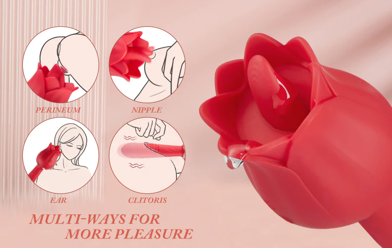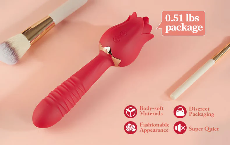 Want a stylish tongue licking vibrator? The red rose is your dreaming one.It can serve as a dildo to satisfy your G-spot, A-spot, and U-spot desires, as well as to satisfy the tip-of-tongue teasing of your nipples, clitoris, and anus, which can save you even more money! 7 tongue licking modes5 Vibrating 5 Thrusting Tongue Licking mode lets you enjoy different frequencies of pleasure, and let you nest in waves of orgasm, issuing a charming cry. The 2.1 inch diameter of the rose has a greater range of stimulation, and the irregular vibrations of the flower shape provide a more intense sensation, tirelessly teasing your most sensitive areas. The skin-friendly material makes you never want to put down, simple and portable, take it wherever you want to go!
